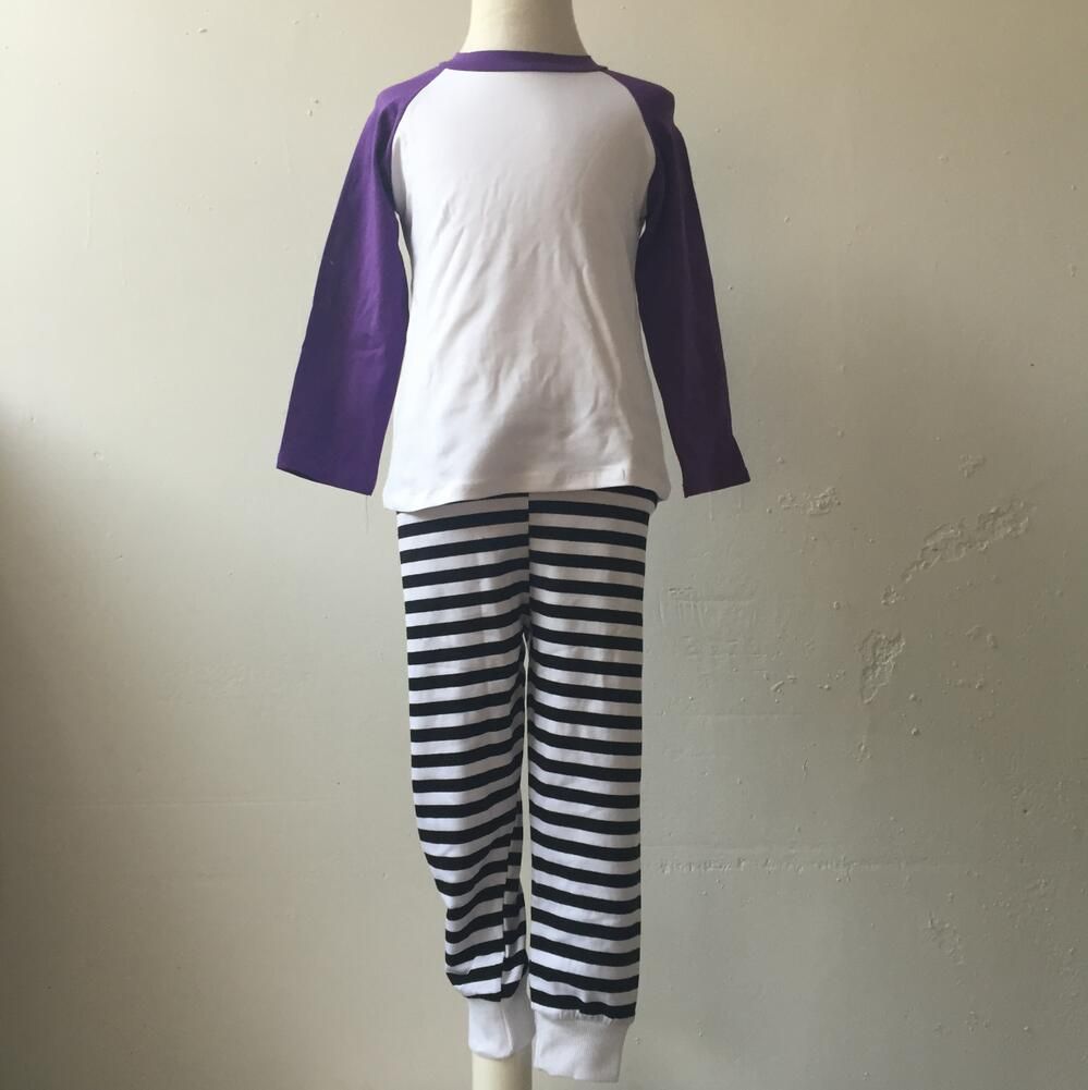 Fashion Baby Kids Girls Casual Purple Raglan Long Sleeve Shirt Match Black Stripe Elastic Pant Pajamas Suits